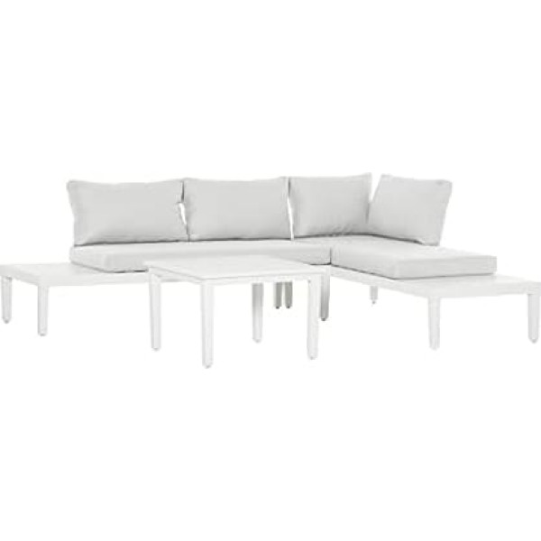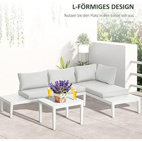 COMPACT, CORRECT DESIGN: The 3-piece garden furniture set consists of 1 reclining sofa, 1 chaise sofa and 1 coffee table. Its L-shape is perfect for corners and spaces with limited space such as apartments, backyards and balconies. Plenty of storage space: a coffee table and the small side tables on the side of the sofas provide additional storage space for your cups, mobile phone or other items. Comfortable padding: Experience the ultimate relaxation with extra deep seat and thick cushions in which you sink comfortably. The cushion covers with zips can be easily removed for cleaning. Sturdy frame: this seating set is made from a durable aluminium frame that is both water and UV resistant and can be used reliably outdoors for years. The slatted construction prevents water accumulation and dries quickly. Product details: table dimensions: 68L x 68W x 45H cm. Double sofa dimensions: 173W x 77D x 71H cm. Chaise sofa dimensions: 173L x 77W x 71H cm › See more product details