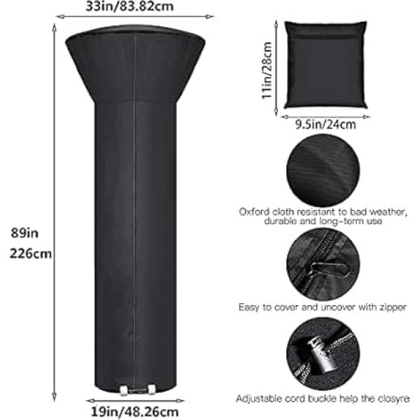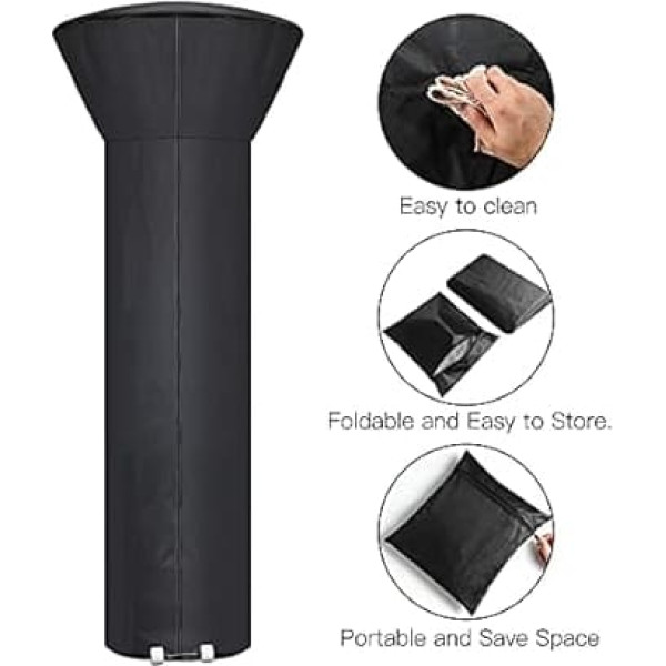 DESIGN FOR BAD WEATHER The high quality large patio heater cover for all year round protects against damage caused by wind, rain, frost, dirt, dust, bird droppings, tree sap and more. Thicker Material - Our heater cover is made of thicker fibers for higher strength and tear resistance, weather resistant, dustproof. This round patio radiator cover guarantees longer protection. Full size: 226 x 85 x 48 cm. Universal design fits most patio heaters. Please measure your patio heater before purchasing. EASY TO CLEAN AND CONVENIENT STORAGE - You can wipe dust or stains on the patio heater cover with a damp cloth and dry it under the sun. Equipped with a zippered storage bag for easy storage. Note: Hualedi promises a service life of 24 months. › See more product details; Product description Pyramid shaped patio heater cover made of a strong and durable material, durable. Waterproof patio heater cover that allows the patio heater to breathe, preventing rust. The outdoor fire pit cover with zipper opening on the side for easy installation and removal. The patio heater cover is a must have to keep your flame heater protected and in top condition. Recommended for people with a large patio heater. Patio Heater Cover Black All season design protects against damage from wind, rain, frost, dirt, dust, bird droppings, tree sap and more. Specifications: Material: waterproof 210D oxford fabric Measures 86.75\; Product description Pyramid shaped patio heater cover made of a strong and durable material, durable. Waterproof patio heater cover that allows the patio heater to breathe, preventing rust. The outdoor fire pit cover with zipper opening on the side for easy installation and removal. The patio heater cover is a must have to keep your flame heater protected and in top condition. Recommended for people with a large patio heater. Patio Heater Cover Black All season design protects against damage from wind, rain, frost, dirt, dust, bird droppings, tree sap and more. Specifications: Material: waterproof 210D oxford fabric Measures 86.75\; Pyramid shaped patio heater cover made of a strong and durable material, durable. Waterproof patio heater cover that allows the patio heater to breathe, preventing rust. The outdoor fire pit cover with zipper opening on the side for easy installation and removal. The patio heater cover is a must have to keep your flame heater protected and in top condition. Recommended for people with a large patio heater. Patio Heater Cover Black All season design protects against damage from wind, rain, frost, dirt, dust, bird droppings, tree sap and more. Specifications: Material: waterproof 210D oxford fabric Measures 86.75\