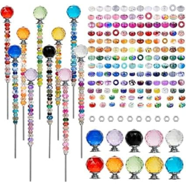 Decorative Fairy Sticks with Beads for Garden, 10 Crystal Stoppers, 160 Round Beads, 10 Threaded Rods with Hex Nuts (10, Stake-02)