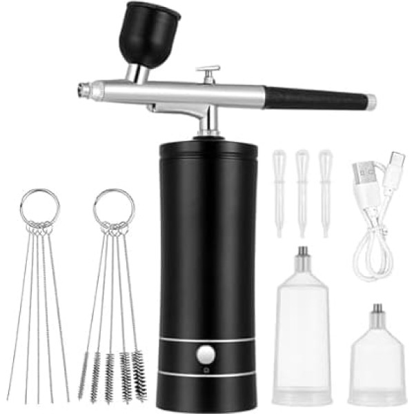 Airbrush make-up: wireless design: this wireless airbrush set is designed for easy mobility and use, so you can work anywhere without annoying cables. Nail airbrush machine: the airbrush is not only practical, but also stylish. Airbrush compressor: our wireless airbrush set is designed to make your painting and nail art projects easier and more efficient. Airbrush: complete accessories: this airbrush set comes with rich accessories, including cleaning brushes, charging cables and more, so you can start using quickly. Airbrush: multifunctional: this airbrush set is versatile and can be used for a variety of applications, including nail art, model painting, spray painting and make-up application. › See more product details; Product description Package includes: 1 x air brush set, 2 x nozzle core, 3 x droppers, 1 cup (10 ml), 1 x plastic cup (25 ml), 1 x plastic cup (40 ml), 1 x cleaning brush set, 1 x needle set, 1 x charging line, 1 x English manual, 1 x box Features Power: 6W Nail Airbrush Complete accessories: This airbrush kit comes with extensive accessories, including cleaning brushes, charging cables and more, so you can use it quickly. Battery capacity: 900mA airbrush painting kit. Input voltage: 5V/1A airbrush compressor. Size: 14.50 x 2.80 x 1.00cm/5.70 x 1.10 x 0 Nail Airbrush Machine Atomization current: approx. 0 x Nail Airbrush Size: 12.00 x 4.20 x 4.20 cm / 4.72 x 1.65 x 1 wireless airbrush. Colour: black airbrush. Material: Airbrush paint set made of aluminium alloy. Electric Airbrush: This electric airbrush is efficient and effortless, allowing you to finish your projects quickly and with satisfying airbrush makeup results. Wireless design: this wireless airbrush kit is designed for easy mobility and use, so you can work anywhere without the hassle of cable airbrush kit. Product information: Airbrush paint set. The airbrush is not only practical, but also stylish. Airbrush The set comes with all necessary accessories such as cleaning brush and charging cable so you can use it directly. Air brush for nails: our wireless airbrush set is designed to make your painting and nail art projects easier and more efficient; Product description Package includes: 1 x air brush set, 2 x nozzle core, 3 x droppers, 1 cup (10 ml), 1 x plastic cup (25 ml), 1 x plastic cup (40 ml), 1 x cleaning brush set, 1 x needle set, 1 x charging line, 1 x English manual, 1 x box Features Power: 6W Nail Airbrush Complete accessories: This airbrush kit comes with extensive accessories, including cleaning brushes, charging cables and more, so you can use it quickly. Battery capacity: 900mA airbrush painting kit. Input voltage: 5V/1A airbrush compressor. Size: 14.50 x 2.80 x 1.00cm/5.70 x 1.10 x 0 Nail Airbrush Machine Atomization current: approx. 0 x Nail Airbrush Size: 12.00 x 4.20 x 4.20 cm / 4.72 x 1.65 x 1 wireless airbrush. Colour: black airbrush. Material: Airbrush paint set made of aluminium alloy. Electric Airbrush: This electric airbrush is efficient and effortless, allowing you to finish your projects quickly and with satisfying airbrush makeup results. Wireless design: this wireless airbrush kit is designed for easy mobility and use, so you can work anywhere without the hassle of cable airbrush kit. Product information: Airbrush paint set. The airbrush is not only practical, but also stylish. Airbrush The set comes with all necessary accessories such as cleaning brush and charging cable so you can use it directly. Air brush for nails: our wireless airbrush set is designed to make your painting and nail art projects easier and more efficient; Package includes: 1 x air brush set, 2 x nozzle core, 3 x droppers, 1 cup (10 ml), 1 x plastic cup (25 ml), 1 x plastic cup (40 ml), 1 x cleaning brush set, 1 x needle set, 1 x charging line, 1 x English manual, 1 x box Features Power: 6W Nail Airbrush Complete accessories: This airbrush kit comes with extensive accessories, including cleaning brushes, charging cables and more, so you can use it quickly. Battery capacity: 900mA airbrush painting kit. Input voltage: 5V/1A airbrush compressor. Size: 14.50 x 2.80 x 1.00cm/5.70 x 1.10 x 0 Nail Airbrush Machine Atomization current: approx. 0 x Nail Airbrush Size: 12.00 x 4.20 x 4.20 cm / 4.72 x 1.65 x 1 wireless airbrush. Colour: black airbrush. Material: Airbrush paint set made of aluminium alloy. Electric Airbrush: This electric airbrush is efficient and effortless, allowing you to finish your projects quickly and with satisfying airbrush makeup results. Wireless design: this wireless airbrush kit is designed for easy mobility and use, so you can work anywhere without the hassle of cable airbrush kit. Product information: Airbrush paint set. The airbrush is not only practical, but also stylish. Airbrush The set comes with all necessary accessories such as cleaning brush and charging cable so you can use it directly. Air brush for nails: our wireless airbrush set is designed to make your painting and nail art projects easier and more efficient