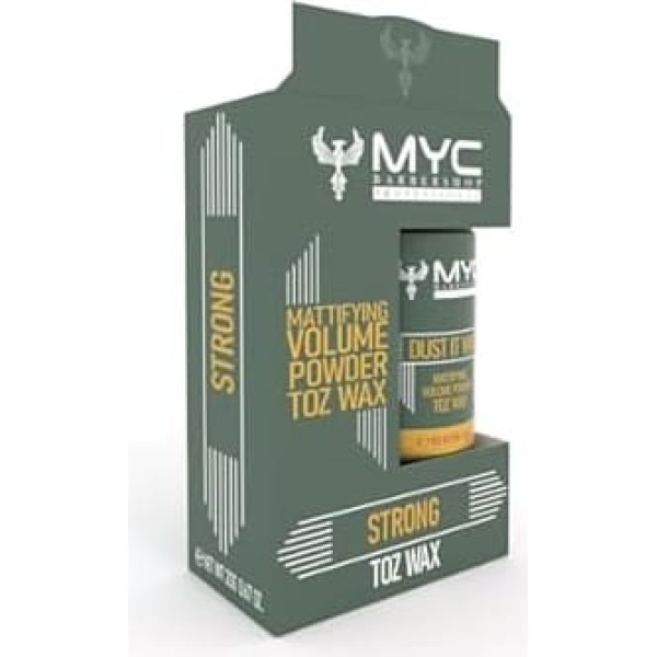 Volume effect: the powder wax gives the hair immediately noticeable volume and a grippy texture for modern men's hairstyles Matte finish: creates a natural look without unwanted shine - ideal for contemporary styling results Ultra strong hold: ensures long-lasting shape stability and control throughout the day Practical use: easy to dispense and distribute evenly, perfect for everyday use Professional quality: 20 g high-quality styling product, developed for use in the salon and at home › See more product details; Product description Product description Discover the MYC Barbershop Dust It Wax - your secret to perfectly styled hair. This professional volume powder wax with ultra strong hold instantly gives your hair noticeable volume and a matte texture. With its innovative formula, you can effortlessly create modern men's hairstyles that last all day. The 20 g product impresses with its practical use: no gluing, no unwanted shine formation - only natural-looking styles with maximum control. Ideal for everyday use, both in the professional salon environment and at home. The lightweight texture allows for precise application and makes styling a real pleasure. Perfect for on the go, it gives your hair the look you want with professional results. Safety Warning For external use only. Avoid contact with eyes and mucous membranes. In case of contact, rinse thoroughly with water immediately. Keep out of reach of children. Store in a cool and dry place. Do not inhale. In case of skin irritation, discontinue use and consult a doctor.; Product description Product description Discover the MYC Barbershop Dust It Wax - your secret to perfectly styled hair. This professional volume powder wax with ultra strong hold instantly gives your hair noticeable volume and a matte texture. With its innovative formula, you can effortlessly create modern men's hairstyles that last all day. The 20 g product impresses with its practical use: no gluing, no unwanted shine formation - only natural-looking styles with maximum control. Ideal for everyday use, both in the professional salon environment and at home. The lightweight texture allows for precise application and makes styling a real pleasure. Perfect for on the go, it gives your hair the look you want with professional results. Safety Warning For external use only. Avoid contact with eyes and mucous membranes. In case of contact, rinse thoroughly with water immediately. Keep out of reach of children. Store in a cool and dry place. Do not inhale. In case of skin irritation, discontinue use and consult a doctor.; Product description Discover the MYC Barbershop Dust It Wax - your secret to perfectly styled hair. This professional volume powder wax with ultra strong hold instantly gives your hair noticeable volume and a matte texture. With its innovative formula, you can effortlessly create modern men's hairstyles that last all day. The 20 g product impresses with its practical use: no gluing, no unwanted shine formation - only natural-looking styles with maximum control. Ideal for everyday use, both in the professional salon environment and at home. The lightweight texture allows for precise application and makes styling a real pleasure. Perfect for on the go, it gives your hair the look you want with professional results. Safety Warning For external use only. Avoid contact with eyes and mucous membranes. In case of contact, rinse thoroughly with water immediately. Keep out of reach of children. Store in a cool and dry place. Do not inhale. In case of skin irritation, discontinue use and consult a doctor.