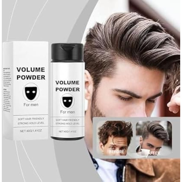 Volume and hold to perfection - For the modern men's look. Give your hair more fullness and strong hold in no time at all - with our Volume Powder. The innovative formula instantly adds visibly more volume and leaves your styling flawless all day long. Perfect for men who love a well-groomed, toned and trend-conscious look. Stylish look – effective and modern. With its minimalist design, the Volume Powder is not only a practical tool, but also a real eye-catcher in the bathroom or when travelling. A must-have for anyone who wants to add that special touch to their hair style. Weatherproof and long-lasting - your styling keeps what it promises. Whether in rain, high humidity or intensive training - the volume powder reliably stays in shape. No need to re-styling. Ideal for the active lifestyle and anyone who doesn't want to compromise on the go. Gentle on hair - Strong in result care meets performance: free from harsh chemicals, the product is particularly hair and skin-friendly. It protects against dehydration and preserves the natural health of your hair - for styling that not only looks good, but also feels good. Precise and practical – always ready to use The compact pen shape allows precise application to roots or tips without leaving any residue. Fits in any pocket - ideal for quick touch-ups on the go or in everyday life. › See more product details; Product description Product description Visibly more volume, noticeably more confidence - in seconds. With our texture powder for men, you can bring your hair to its best shape - without effort, without residue, but with maximum effect. The feather-light hair powder instantly adds texture, volume and strong hold without weighing down or making hair greasy. The formula with natural ingredients is ideal for sensitive scalps and provides a healthy, matte finish - just like a professional. Whether for the daily look, for the date or a business appointment: simply apply to dry hair, work in - done. No hairspray, no gel, no hassle. Perfect for short to medium length men's hairstyles, thinning hair or emphasizing structure. Discover styling that doesn't stick, doesn't shine – but makes an impression. Residue-free. Strong hold Ideal for men Styled in 10 seconds Man with flat hair vs. Full, textured hairstyle after application. Application in 3 steps. Apply powder to dry hair Work in with your fingers. Style & enjoy volume Package includes: 1/2/3 x men's hair powder. Instructions for use: Apply the hair styling powder directly to the hair roots or tips to achieve the desired result. It is suitable for different occasions and is easy to use. Safety Warning NO; Product description Product description Visibly more volume, noticeably more confidence - in seconds. With our texture powder for men, you can bring your hair to its best shape - without effort, without residue, but with maximum effect. The feather-light hair powder instantly adds texture, volume and strong hold without weighing down or making hair greasy. The formula with natural ingredients is ideal for sensitive scalps and provides a healthy, matte finish - just like a professional. Whether for the daily look, for the date or a business appointment: simply apply to dry hair, work in - done. No hairspray, no gel, no hassle. Perfect for short to medium length men's hairstyles, thinning hair or emphasizing structure. Discover styling that doesn't stick, doesn't shine – but makes an impression. Residue-free. Strong hold Ideal for men Styled in 10 seconds Man with flat hair vs. Full, textured hairstyle after application. Application in 3 steps. Apply powder to dry hair Work in with your fingers. Style & enjoy volume Package includes: 1/2/3 x men's hair powder. Instructions for use: Apply the hair styling powder directly to the hair roots or tips to achieve the desired result. It is suitable for different occasions and is easy to use. Safety Warning NO; Product description Visibly more volume, noticeably more confidence - in seconds. With our texture powder for men, you can bring your hair to its best shape - without effort, without residue, but with maximum effect. The feather-light hair powder instantly adds texture, volume and strong hold without weighing down or making hair greasy. The formula with natural ingredients is ideal for sensitive scalps and provides a healthy, matte finish - just like a professional. Whether for the daily look, for the date or a business appointment: simply apply to dry hair, work in - done. No hairspray, no gel, no hassle. Perfect for short to medium length men's hairstyles, thinning hair or emphasizing structure. Discover styling that doesn't stick, doesn't shine – but makes an impression. Residue-free. Strong hold Ideal for men Styled in 10 seconds Man with flat hair vs. Full, textured hairstyle after application. Application in 3 steps. Apply powder to dry hair Work in with your fingers. Style & enjoy volume Package includes: 1/2/3 x men's hair powder. Instructions for use: Apply the hair styling powder directly to the hair roots or tips to achieve the desired result. It is suitable for different occasions and is easy to use. Safety Warning NO