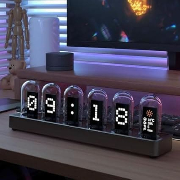 UNIQUE AND RETRO DESIGN The Nixie Tube Clock features a vintage inspired design that adds a touch of nostalgia to any room. With its slim and compact size, it fits comfortably on your desk, shelf or nightstand and blends seamlessly into your decor. Customizable RGB Lighting This DIY digital tube clock features built-in RGB LEDs, allowing you to choose from a variety of colors to match your mood or decor. Create a captivating visual display with the color changing option that makes your watch truly unique. ACCURATE TIME KEEPING Using state-of-the-art technology, the Nixie Tube Clock ensures precise time keeping. Its reliable movement guarantees that you never miss a beat and always stay on schedule. EASY TO ASSEMBLE Enjoy the satisfaction of building and personalizing your own watch with the DIY digital tube clock kit. The easy-to-follow instructions and included components make assembly a breeze, perfect for beginners and enthusiasts. VERSATILE FUNCTIONALITY This analog RGB clock doubles as an alarm clock, providing you with a gentle wake-up call every morning. Start your day with this multifunctional and stylish watch. › See more product details; Product description Special features: UNIQUE RETRO DESIGN The Nixie tube clock features a vintage inspired design that adds a touch of nostalgia to any room. With its slim and compact size, it fits comfortably on your desk, shelf or bedside table. Customizable RGB Lighting This DIY digital tube clock features built-in RGB LEDs, allowing you to choose from a variety of colors to match your mood or decor. Create a captivating visual display with the color changing option. * Accurate Time Keeping: Nixie tube clock uses state-of-the-art technology to ensure accurate time keeping. Its reliable movement ensures that you never miss a beat and always stay on schedule. * Easy to Assemble With the digital tube clock set, you can enjoy the satisfaction of building and personalizing your own watch. The easy-to-follow instructions and included components make assembly a breeze. VERSATILE FUNCTIONALITY In addition to its timekeeping functions, this RGB clock doubles as an alarm clock, giving you a gentle wake-up call every morning. Start your day with this multifunctional watch. Technical data: Item Name: Nixie Tube Clock * Material: 6063 aluminum alloy base and quartz glass tube. Size: approx. 218.5 x 30 x 58.7mm Colour: black, grey. Options: A, B, C (optional) A:Black,APP control B: black, base illuminated and app control. C: Gray, APP control Light color: RGB Screen: 1.1 inch 178 degree color screen Resolution: 135 x 240 dpi. Input Voltage: DC 5V Power supply: Type-C Package Content: 1 x Nixie Tube Clock; Product description Special features: UNIQUE RETRO DESIGN The Nixie tube clock features a vintage inspired design that adds a touch of nostalgia to any room. With its slim and compact size, it fits comfortably on your desk, shelf or bedside table. Customizable RGB Lighting This DIY digital tube clock features built-in RGB LEDs, allowing you to choose from a variety of colors to match your mood or decor. Create a captivating visual display with the color changing option. * Accurate Time Keeping: Nixie tube clock uses state-of-the-art technology to ensure accurate time keeping. Its reliable movement ensures that you never miss a beat and always stay on schedule. * Easy to Assemble With the digital tube clock set, you can enjoy the satisfaction of building and personalizing your own watch. The easy-to-follow instructions and included components make assembly a breeze. VERSATILE FUNCTIONALITY In addition to its timekeeping functions, this RGB clock doubles as an alarm clock, giving you a gentle wake-up call every morning. Start your day with this multifunctional watch. Technical data: Item Name: Nixie Tube Clock * Material: 6063 aluminum alloy base and quartz glass tube. Size: approx. 218.5 x 30 x 58.7mm Colour: black, grey. Options: A, B, C (optional) A:Black,APP control B: black, base illuminated and app control. C: Gray, APP control Light color: RGB Screen: 1.1 inch 178 degree color screen Resolution: 135 x 240 dpi. Input Voltage: DC 5V Power supply: Type-C Package Content: 1 x Nixie Tube Clock; Special features: UNIQUE RETRO DESIGN The Nixie tube clock features a vintage inspired design that adds a touch of nostalgia to any room. With its slim and compact size, it fits comfortably on your desk, shelf or bedside table. Customizable RGB Lighting This DIY digital tube clock features built-in RGB LEDs, allowing you to choose from a variety of colors to match your mood or decor. Create a captivating visual display with the color changing option. * Accurate Time Keeping: Nixie tube clock uses state-of-the-art technology to ensure accurate time keeping. Its reliable movement ensures that you never miss a beat and always stay on schedule. * Easy to Assemble With the digital tube clock set, you can enjoy the satisfaction of building and personalizing your own watch. The easy-to-follow instructions and included components make assembly a breeze. VERSATILE FUNCTIONALITY In addition to its timekeeping functions, this RGB clock doubles as an alarm clock, giving you a gentle wake-up call every morning. Start your day with this multifunctional watch. Technical data: Item Name: Nixie Tube Clock * Material: 6063 aluminum alloy base and quartz glass tube. Size: approx. 218.5 x 30 x 58.7mm Colour: black, grey. Options: A, B, C (optional) A:Black,APP control B: black, base illuminated and app control. C: Gray, APP control Light color: RGB Screen: 1.1 inch 178 degree color screen Resolution: 135 x 240 dpi. Input Voltage: DC 5V Power supply: Type-C Package Content: 1 x Nixie Tube Clock