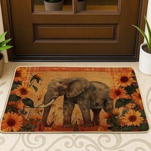 Vollständig anpassbar: Ideal für Eingänge, Küchen, Badezimmer, Balkone, Terrassen, Garagen, Abstellräume, Gartenwege, Pool, Fitnessstudio-Eingänge und Tierbereiche Mehrere Reinigungsmethoden: Leichter Staub kann abgeschüttelt werden, während hartnäckiger Schmutz mit einem Staubsauger, einem Schlauch oder einer Maschinenwäsche entfernt werden kann, um die Fußmatte frisch zu halten Leistungsstarke Staubaufnahme: Leinenimitat mit technischer Struktur zeichnet sich durch Staubaufnahme aus und verbessert die Sauberkeit im Eingangsbereich Hervorragend rutschfest: Gummi-Unterseite bietet starken Halt, verhindert ein Verrutschen, ideal für stark frequentierte Bereiche Raumakzente: Das HD-Muster und das Design passen zu verschiedenen Einrichtungsstilen und verleihen Ihrem Eingangsbereich ein personalisiertes dekoratives Element › See more product details; Product description Elefanten-Fußmatte, orangefarbene Sonnenblumen-Eingangsmatte für Außen- und Innenbereich, Herbstdekoration, Gummi, wasserdicht, rutschfest, staubabsorbierend, leicht zu reinigen; Product description Elefanten-Fußmatte, orangefarbene Sonnenblumen-Eingangsmatte für Außen- und Innenbereich, Herbstdekoration, Gummi, wasserdicht, rutschfest, staubabsorbierend, leicht zu reinigen; Elefanten-Fußmatte, orangefarbene Sonnenblumen-Eingangsmatte für Außen- und Innenbereich, Herbstdekoration, Gummi, wasserdicht, rutschfest, staubabsorbierend, leicht zu reinigen