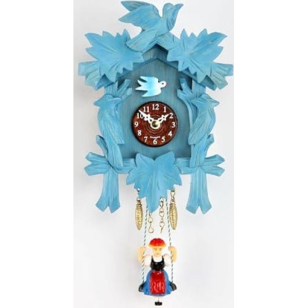 Type: Original Black Forest Clock Movement: quartz movement Origin: Made in Germany › See more product details; Product description Kuckulino miniature clock black forest quartz with cuckoo call, blue TU 2002 SQ blue, colour: blue, clock plays 12 melodies. The songs are: Music Box Dancer, Muss i denn, Zhivago melody, Mill in the Black Forest, Bacarole, Ich weiss nicht was sollen, Oh mein Papa, Happy Wanderer, Que sera, Edelweiss, For Elise, Clementine. The watch has a quartz movement with manual night shut-off and wooden dial. The clock requires two AA Mignon batteries.; Product description Kuckulino miniature clock black forest quartz with cuckoo call, blue TU 2002 SQ blue, colour: blue, clock plays 12 melodies. The songs are: Music Box Dancer, Muss i denn, Zhivago melody, Mill in the Black Forest, Bacarole, Ich weiss nicht was sollen, Oh mein Papa, Happy Wanderer, Que sera, Edelweiss, For Elise, Clementine. The watch has a quartz movement with manual night shut-off and wooden dial. The clock requires two AA Mignon batteries.; Kuckulino miniature clock black forest quartz with cuckoo call, blue TU 2002 SQ blue, colour: blue, clock plays 12 melodies. The songs are: Music Box Dancer, Muss i denn, Zhivago melody, Mill in the Black Forest, Bacarole, Ich weiss nicht was sollen, Oh mein Papa, Happy Wanderer, Que sera, Edelweiss, For Elise, Clementine. The watch has a quartz movement with manual night shut-off and wooden dial. The clock requires two AA Mignon batteries.