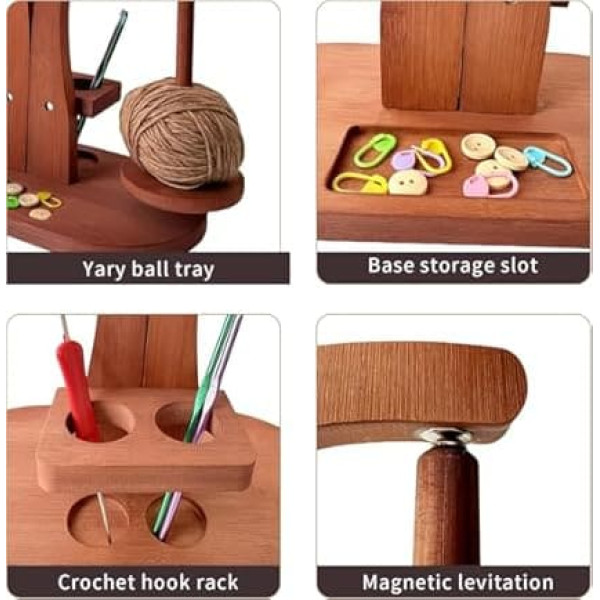 Magnetic Wooden Yarn Holder for Crochet & Knitting - Smooth Rotating Yarn Spinner with Double Spindles, Tangle-Free Thread Dispenser, Ideal Gift for Knitters & Weavers