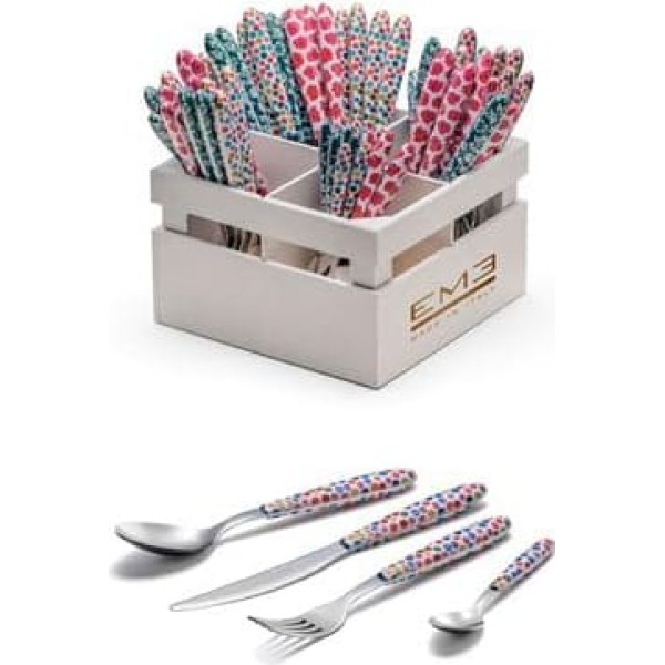 Eme You & Me Real Blend Pop Art Classic Service 24 Pieces 6 Place Table Assorted Colours Made in Italy Fork Knife Spoon Spoon