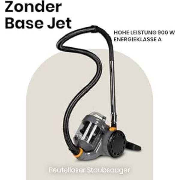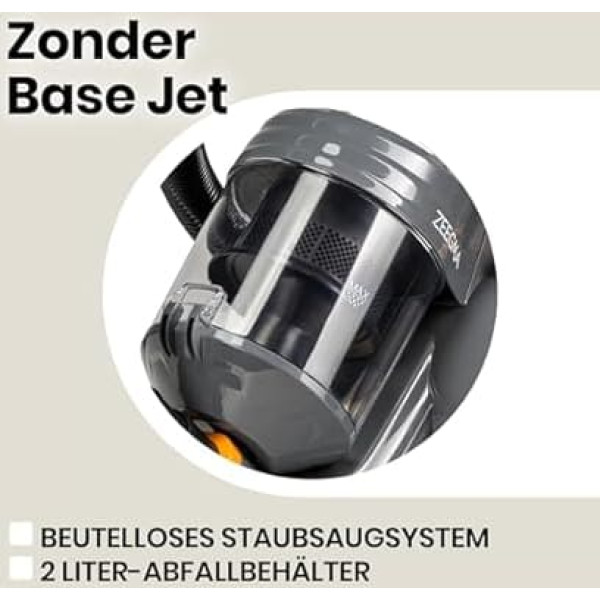 ZEEGMA Zonder Base Jet Staubsauger beutellos mit Set von Aufsätzen, Zyklontechnologie, PowerSuction Ausgangsleistung 4000 Watt, Turbobürste, 2 HEPA Filter, Staubbehälter 2L