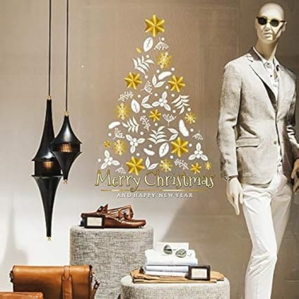 Kina - CRNT0128 Window Sticker Christmas Merry Christmas Tree English Reusable Stick for Removing Crystal Suction Cup Shop Window