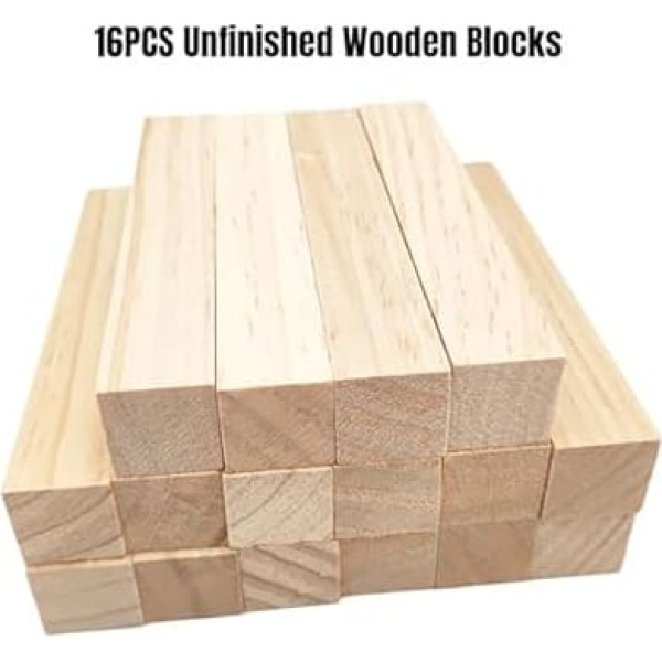 Package includes: 16 pieces 15 x 2.5 x 2.5 cm wooden blocks, ideal for whittling and carving. Material: pine wood. DIY Crafts: These unfinished wooden blocks are easy to shape, carve and cut, perfect for wooden ornaments, DIY art projects. Easy to paint and write: These wooden blocks are smooth enough without splinters, and the creamy white colour makes it easy to paint and write and shows every fine pattern detail in your carving project. Application: These blocks are a great decoration piece for events or parties with a rustic theme, including weddings, children's parties, etc. › See more product details; Product description Product Features: Material: pine wood. Dimensions: 15 x 2.5 x 2.5 cm. Package includes: 16 x wooden blocks.; Product description Product Features: Material: pine wood. Dimensions: 15 x 2.5 x 2.5 cm. Package includes: 16 x wooden blocks.; Product Features: Material: pine wood. Dimensions: 15 x 2.5 x 2.5 cm. Package includes: 16 x wooden blocks.