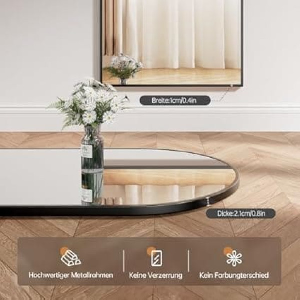 【MODERN ARCH DESIGN】:An excellent standing mirror with a curved top for easy leaning, standing and hanging. This full length curved mirror is available in four sizes: 150x40cm/150x50cm/160x50cm/165x55cm. The smooth metal frame contributes to the sophisticated overall look, and the corners of the frame are secured with sturdy metal screws. 【HD Explosion-proof Glass】The standing mirror is made of shatterproof HD glass, real and clear image without distortion, long service life, easy to clean, just wipe it with a damp cloth. The back is covered with explosion-proof film that breaks into small particles instead of sharp fragments and will not spill even when exposed to external force, which is protective and durable. 【3 Ways to Use】The full body mirror comes with a folding stand and built in hook, the included screws go into the wall to hang it, please note the quality of the wall. Open the built-in bracket mirror can stand up, triangular construction is very stable. Folding bracket back to lean against the wall, easy to tilt the mirror, so that people of different sizes can see their whole body. 【Decorative and Practical】: Curved full length mirrors can provide the room with sufficient light, improve brightness and sense of space, not only allow you to check your whole body at a glance, but also a perfect decoration for your home, bathroom, dressing room, bedroom, wardrobe or entrance hall. 【Elaborate Packaging】: the full length standing mirror is packed with thicker cardboard, and the mirror is shock-absorbing with pearl cotton on the inside and outside, which effectively prevents the impact of external forces and greatly reduces the possibility of damage and deformation of the product received. If you encounter any problems, we will offer you a satisfactory solution. › See more product details