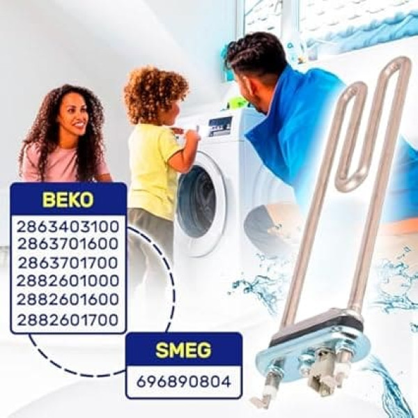 Compatibility: the heating rod washing machine has the original codes 2863403100, 2863701600, 2863701700, 2882601000, 2882601600, 2850360200, 2882601700 for Be. ko washing machine, 69 6890804 for Smeg. Size – The heating element has a total length of 278 mm, length to flange 250 mm, flange length 81 mm, width 28 mm. It has a RAST 2.5 connector for easy and safe installation. Technical features: the output power of 1950 W ensures efficient and fast heating. The power supply with 230 V ensures constant and reliable heating. Improved safety – the heating element is equipped with two thermal fuses and sensor NTC. These elements monitor and regulate temperature together, prevent overheating and ensure safe operation of the washing machine. Maintenance – Check the heating element regularly for signs of wear or damage such as corrosion or mineral deposits. Clean the heating element when detecting mineral deposits. › See more product details