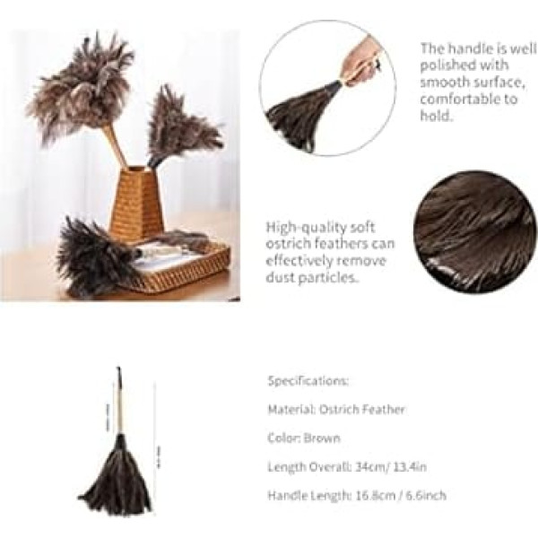 Ostrich Feathers, 13.4 Inch Mini Feather Duster with Wooden Handle