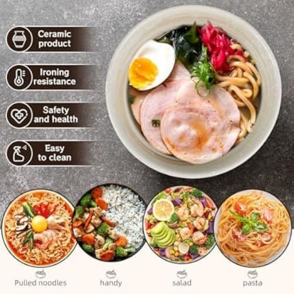 Henrrida Set of 2 Ramen Ceramic Bowls with Lid