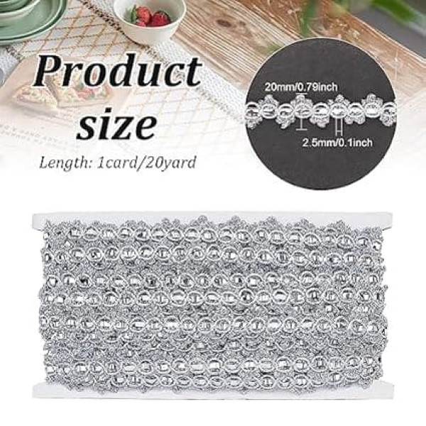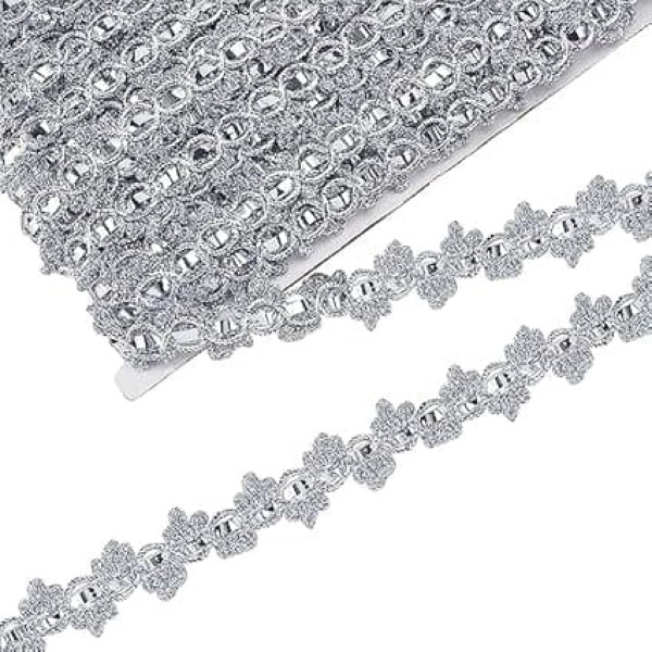 Package & Size: You will receive a roll of shiny silver lace trim. Our band is approx. 18.3 m long, 20 mm wide and 2.6 mm thick. You can use the ribbon to make beautiful decorations and it is enough for you to use it in your daily life. Unique design: Our silver lace trim has a figure of 8 hollow designs with a silver band and there are 3 petals flowers at the end, which are more three-dimensional. Besides, our band is shiny under the light. It is a gorgeous pretty embellishment for your craft project on any occasion. High Quality Material This silver lace ribbon is made of fiber, which has great workmanship and bright color. And it is strong, durable, not easy to damage or fade, which is really perfect for decorating clothes, bags and cases. Easy to Use You can use the needle and thread to hand sew our shiny ribbon on the items you want to decorate. In this way, the ribbon can last for a long time and you can cut the braid lace trim to any length according to your needs. It will add bright colour as your decoration. Widely used: Suitable for dress making, evening wear, costumes, craft projects, table decorations, hair pins, DIY, scrapbooks, gift wrapping, party, home, birthdays, Valentine's Day, sewing, card making, bows, jewellery design, floral arrangement, lace collars and bracelets, etc. › See more product details; Product description Features: Good gifts: You can give our shiny braid trim ribbon to your family and friends who like this beautiful decorative ribbon and DIY handmade as a great gift. You will use this ribbon to create wonderful decorations and you can share the fun of DIY. Specifications: Material:Fiber Colour: silver. Size: approx. 20mm wide, 2.5mm thick.; Product description Features: Good gifts: You can give our shiny braid trim ribbon to your family and friends who like this beautiful decorative ribbon and DIY handmade as a great gift. You will use this ribbon to create wonderful decorations and you can share the fun of DIY. Specifications: Material:Fiber Colour: silver. Size: approx. 20mm wide, 2.5mm thick.; Features: Good gifts: You can give our shiny braid trim ribbon to your family and friends who like this beautiful decorative ribbon and DIY handmade as a great gift. You will use this ribbon to create wonderful decorations and you can share the fun of DIY. Specifications: Material:Fiber Colour: silver. Size: approx. 20mm wide, 2.5mm thick.