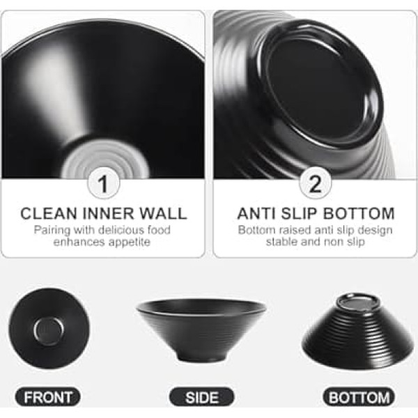 Durable and Safe Material These ramen bowls are made of food grade melamine. Unbreakable and lightweight, 100% BPA-free and non-toxic, suitable for home use. SUPERIOR CRAFTSMANSHIP The large bowl nozzle is designed to hold more food and prevent it from spilling. The thickened base effectively prevents the bowl from slipping during use. This ramen bowl set has an elegant shape and guarantees the best quality. Easy to clean: these pasta bowls have a space-saving design and smooth round edges. It can be cleaned in the sink or dishwasher. Unlike ceramic or porcelain ramen bowls. You don't have to worry about it breaking, and it is so light! Widely used: 1600 ml - Just the right size for soup, pasta, salad, snacks such as ramen, Vietnamese pho, udon, Korean soba etc. Can be used not only at home, but also outdoors. Such as camping, picnic, barbecue, party. Perfect gift: The 4 pieces ramen bowls come with 4 spoons and 4 pairs of chopsticks, making this set an ideal gift for housewarmings, weddings, birthdays, holidays, anniversaries or even simply for passionate ramen lovers. › See more product details; Product description Features: - Each set contains 4 x ramen bowl+4 x chopsticks+4 x spoons. - Ideal for serving ramen, pho, udon, noodles, wan-tan, broth, stew, various soups, vegetables and seafood/meat with soup. - 1600ml: Large enough for soup, noodles such as ramen, Vietnamese pho, udon, Korean soba etc. - Stackable, does not take up much space. - Lightweight, convenient to take out, such as when camping. Product information: Condition: 100% new. Material: melamine. Package: 4 x Ramen Bowl+4 x Chopsticks+4 x Spoons Size: 1600 ml. Colour: black; Product description Features: - Each set contains 4 x ramen bowl+4 x chopsticks+4 x spoons. - Ideal for serving ramen, pho, udon, noodles, wan-tan, broth, stew, various soups, vegetables and seafood/meat with soup. - 1600ml: Large enough for soup, noodles such as ramen, Vietnamese pho, udon, Korean soba etc. - Stackable, does not take up much space. - Lightweight, convenient to take out, such as when camping. Product information: Condition: 100% new. Material: melamine. Package: 4 x Ramen Bowl+4 x Chopsticks+4 x Spoons Size: 1600 ml. Colour: black; Features: - Each set contains 4 x ramen bowl+4 x chopsticks+4 x spoons. - Ideal for serving ramen, pho, udon, noodles, wan-tan, broth, stew, various soups, vegetables and seafood/meat with soup. - 1600ml: Large enough for soup, noodles such as ramen, Vietnamese pho, udon, Korean soba etc. - Stackable, does not take up much space. - Lightweight, convenient to take out, such as when camping. Product information: Condition: 100% new. Material: melamine. Package: 4 x Ramen Bowl+4 x Chopsticks+4 x Spoons Size: 1600 ml. Colour: black