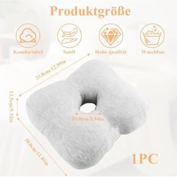 Piercing cushion: This ear piercing cushion with hole, so that your ear is pressure-free, has given you a decent night sleep. The ear piercing with hole is just in the right place to support your head and neck, and the pillow is padded enough to ensure there is room for the ear while your head is on the pillow. Absolutely worth the investment if you suffer from ear pain, relieve ear pain, have had ear infections, CNH symptoms or ear surgery. Piercing pillow for side sleepers: This ear piercing pillow is ideal if you like to sleep on your side. The soft material and cushioning create a relaxing environment for everyone. The hole in the middle of the pillow provides comfortable protection for the ear and minimises friction and pain. Comfortable cushion: this ear cushion is small enough to pack and take with you anywhere, you can fill it exactly as you want it, so you can have a good sleep, even when you are on business or travel. Your ear's best friend. Compared to flat pillows, the curved curve weighs head and shoulders, promotes spine alignment and reduces neck strain. Travel pillow: The pillow is really large, so it does not take up much space that you can put on your original pillow. Percing cushion size is 33 × 30 × 13.5 cm / 12.99 × 11.8 × 5.32 inches. Our ear piercing pillow is specially designed for those who wear headphones or ear plugs while sleeping. It effectively relieves pressure on the ears and provides a comfortable sleeping experience. Wonderful gift for ear pain person: If your friends or family members suffer from CNH, pressure wounds, ear pain or they simply like to fall asleep with ear plugs, this donut mould supports their head, while the opening in the middle gives their healing ear a place to rest without the pain of pressure and friction. Also great if you want to keep your hair in a ponytail or bun at night. Satisfaction guaranteed: We pride ourselves on our high-quality products. If for any reason you are not satisfied with your ear cushion, please contact us. We are happy to help you and ensure your complete satisfaction. › See more product details; Product description Features: - Ear piercing cushion, perfect for adults. It material is a soft flesh, luxurious feel on the face that gives you the ultimate sleep - This ear cushion has a special square hole design that gently hugs your ears. The precisely located hole in the middle provides a perfect fit for your newly pierced ear, reducing pressure and preventing irritation. This is also the perfect solution for treating ear infections or ear pain - The doughnut cushion measures 33 x 30 x 13.5 cm / 12.99 x 11.8 x 5.32 inches. Pillow with hole for ear cover is very easy to wash, machine wash and dry operation, do not worry about deforming, reusable. Specifications: Material: lint. Colour: grey. Size: 33 x 30 x 13.5 cm / 12.99 x 11.8 x 5.32 inches. Package includes: 1 x piercing cushion. Warm tips: The ear cushion may not be fluffy enough due to prolonged compression during transport. Please gently fold it with your hand and leave it for a while. Please allow slight errors in size due to manual measurement. Slight colour differences may be avoided, please prevail in kind.; Product description Features: - Ear piercing cushion, perfect for adults. It material is a soft flesh, luxurious feel on the face that gives you the ultimate sleep - This ear cushion has a special square hole design that gently hugs your ears. The precisely located hole in the middle provides a perfect fit for your newly pierced ear, reducing pressure and preventing irritation. This is also the perfect solution for treating ear infections or ear pain - The doughnut cushion measures 33 x 30 x 13.5 cm / 12.99 x 11.8 x 5.32 inches. Pillow with hole for ear cover is very easy to wash, machine wash and dry operation, do not worry about deforming, reusable. Specifications: Material: lint. Colour: grey. Size: 33 x 30 x 13.5 cm / 12.99 x 11.8 x 5.32 inches. Package includes: 1 x piercing cushion. Warm tips: The ear cushion may not be fluffy enough due to prolonged compression during transport. Please gently fold it with your hand and leave it for a while. Please allow slight errors in size due to manual measurement. Slight colour differences may be avoided, please prevail in kind.; Features: - Ear piercing cushion, perfect for adults. It material is a soft flesh, luxurious feel on the face that gives you the ultimate sleep - This ear cushion has a special square hole design that gently hugs your ears. The precisely located hole in the middle provides a perfect fit for your newly pierced ear, reducing pressure and preventing irritation. This is also the perfect solution for treating ear infections or ear pain - The doughnut cushion measures 33 x 30 x 13.5 cm / 12.99 x 11.8 x 5.32 inches. Pillow with hole for ear cover is very easy to wash, machine wash and dry operation, do not worry about deforming, reusable. Specifications: Material: lint. Colour: grey. Size: 33 x 30 x 13.5 cm / 12.99 x 11.8 x 5.32 inches. Package includes: 1 x piercing cushion. Warm tips: The ear cushion may not be fluffy enough due to prolonged compression during transport. Please gently fold it with your hand and leave it for a while. Please allow slight errors in size due to manual measurement. Slight colour differences may be avoided, please prevail in kind.