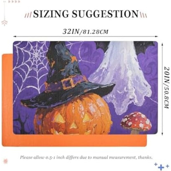 Dekorative Fußmatte für den Außenbereich, Motiv: Halloween, gelber Kürbis, waschbar, Eingangsmatte, 81,3 x 50,8 cm, rutschfester Gummi und waschbar, saugfähig, Küchenmatte für Flur, Küche