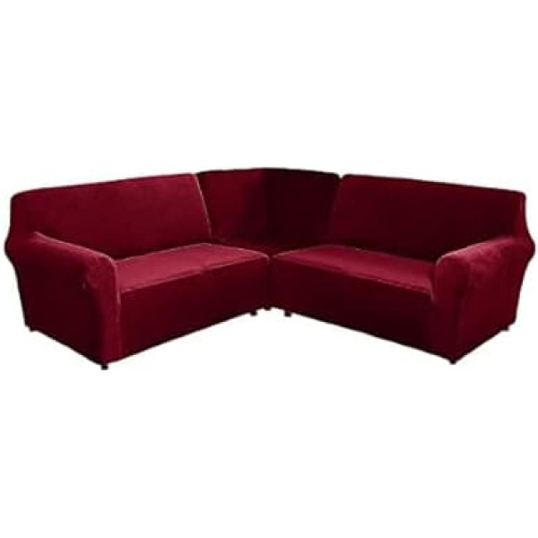 ele ELEOPTION Velvet Sofa Cover L Shape 5 Seater Corner Sofa Cover 3-Piece Stretch Sofa Cover for L-Shaped Sofa Furniture Thick Soft Washable Corner Sofa Cover