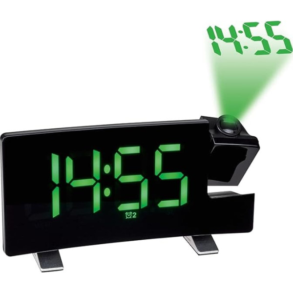 TFA Dostmann 60.5015.04 Projection Alarm Clock with FM Radio, 2 Alarm Times, Black with Green Luminous Numbers, Plastic, (L) 180 x (W) 48 x (H) 100 mm