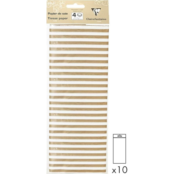 Clairefontaine 393810AMZC - Set of 40 Sheets of Tissue Paper Folded 50 x 70 cm 18 g, Stripes Gold, 1 Set
