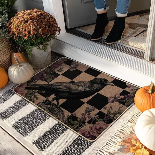 Fußmatte mit Herbstkrähe, schwarzer Vogel, Eingangsmatte für Innen- und Außenbereich, Herbstdekoration, Gummi, wasserdicht, rutschfest, staubabsorbierend, leicht zu reinigen, 73,2 x 43,2 cm