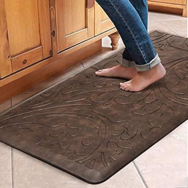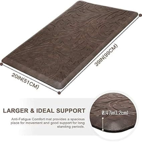 COMFORT The anti fatigue mat provides thick, cushioned support to improve blood circulation and posture and ensure you can stand comfortably while working in the kitchen. Perfect for anyone who stands for a long time Safe materials: KMAT kitchen rug is made of high quality KMAT and thick foam. The mat is made of high quality firm material to ensure it will retain shape during prolonged and heavy use Easy to clean surface: this gel kitchen floor mat is easy to clean; Just wipe the dirt with a damp cloth or vacuum as needed; The waterproof kitchen mats and rugs ensure long term durability and superior comfort NON SLIP The cushioned comfort mat has a unique beveled edge; The water resistant top has an attractive texture and the bottom is super non slip, helpful to prevent tripping and sliding MULTI PURPOSE We also have many sizes to choose from; The mat provides an extra large activity area in laundry room, kitchen, office or any other high traffic place; The neutral color matches any decor Note: Place open rug completely on flat, flat, dry floors; Water under the rug may cause slipping; The rug must be placed on a dry surface during use › See more product details; Product description Product description KMAT Anti Fatigue Kitchen Floor Mat Non Slip Padded Floor Rug for Home, Office and Standing Desk Have you ever experienced back pain from your uncomfortable posture when dishwashing, cooking, washing or working? KMAT upgraded cushioned anti fatigue kitchen floor mat can help relieve discomfort. The ergonomically shaped floor mat helps to shift pressure and Allows you to enjoy a better posture while standing for longer periods of time. Available in grey and brown, the neutral colors will complement any decor. Perfect gift for friends and family. KMAT 39 x 20 inch kitchen rug is made of environmentally friendly material, phathalate-free PVC and durable foam. The unique design features an advanced beveled edge, gorgeous Textured top and grooved bottom make it a comfortable, durable and attractive kitchen rug. The mat is easy to clean and water resistant to ensure a long service life. AMAZING FEATURES: Non-slip Anti-fatigue Water resistant Extra large area. Long service life. ★Ergonomic and comfortable. [Warning] The following tips are applicable to all carpets: open carpet completely and place on flat, flat, dry floor. Water under the carpet can cause slipping. Rug must always be placed on a flat, dry surface during use. Safety Warning Open the carpet completely and place on flat, flat, dry floor. Water under the carpet may cause slipping. The rug must always be placed on a flat, dry surface during use.; Product description Product description KMAT Anti Fatigue Kitchen Floor Mat Non Slip Padded Floor Rug for Home, Office and Standing Desk Have you ever experienced back pain from your uncomfortable posture when dishwashing, cooking, washing or working? KMAT upgraded cushioned anti fatigue kitchen floor mat can help relieve discomfort. The ergonomically shaped floor mat helps to shift pressure and Allows you to enjoy a better posture while standing for longer periods of time. Available in grey and brown, the neutral colors will complement any decor. Perfect gift for friends and family. KMAT 39 x 20 inch kitchen rug is made of environmentally friendly material, phathalate-free PVC and durable foam. The unique design features an advanced beveled edge, gorgeous Textured top and grooved bottom make it a comfortable, durable and attractive kitchen rug. The mat is easy to clean and water resistant to ensure a long service life. AMAZING FEATURES: Non-slip Anti-fatigue Water resistant Extra large area. Long service life. ★Ergonomic and comfortable. [Warning] The following tips are applicable to all carpets: open carpet completely and place on flat, flat, dry floor. Water under the carpet can cause slipping. Rug must always be placed on a flat, dry surface during use. Safety Warning Open the carpet completely and place on flat, flat, dry floor. Water under the carpet may cause slipping. The rug must always be placed on a flat, dry surface during use.; Product description KMAT Anti Fatigue Kitchen Floor Mat Non Slip Padded Floor Rug for Home, Office and Standing Desk Have you ever experienced back pain from your uncomfortable posture when dishwashing, cooking, washing or working? KMAT upgraded cushioned anti fatigue kitchen floor mat can help relieve discomfort. The ergonomically shaped floor mat helps to shift pressure and Allows you to enjoy a better posture while standing for longer periods of time. Available in grey and brown, the neutral colors will complement any decor. Perfect gift for friends and family. KMAT 39 x 20 inch kitchen rug is made of environmentally friendly material, phathalate-free PVC and durable foam. The unique design features an advanced beveled edge, gorgeous Textured top and grooved bottom make it a comfortable, durable and attractive kitchen rug. The mat is easy to clean and water resistant to ensure a long service life. AMAZING FEATURES: Non-slip Anti-fatigue Water resistant Extra large area. Long service life. ★Ergonomic and comfortable. [Warning] The following tips are applicable to all carpets: open carpet completely and place on flat, flat, dry floor. Water under the carpet can cause slipping. Rug must always be placed on a flat, dry surface during use. Safety Warning Open the carpet completely and place on flat, flat, dry floor. Water under the carpet may cause slipping. The rug must always be placed on a flat, dry surface during use.