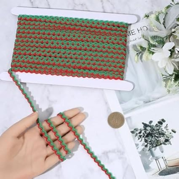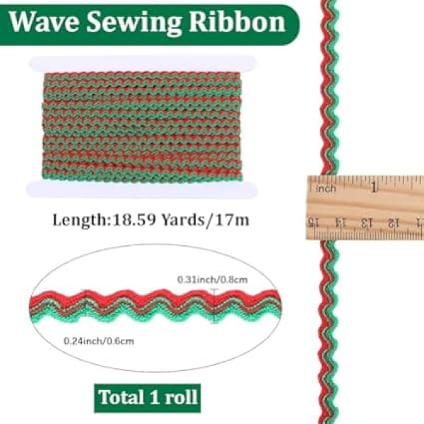 GORGECRAFT 17 m Rick Rack Trim RIC Rac Wave Bending Fransenband 8mm Zweifarbig Zickzack Rot Grün Gewebt Geflochtener Stoff Zum Nähen von Haarbändern Hochzeit DIY Handwerk Party Weihnachtsdekoration