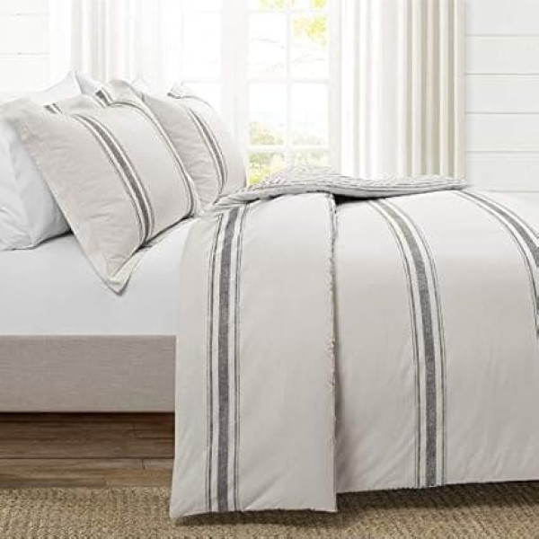 Lush Decor Farmhouse Stripe, Cotton, Grey, Full/Queen