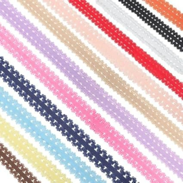 GORGECRAFT 22 m 12 Colours Elastic Picot Ribbon Stretchy Lace Trim 7/8 cm Colourful Loop Soft Elastic Ruffle Trim Headband Lingerie Webbing Crochet Cord Trim for DIY Sewing