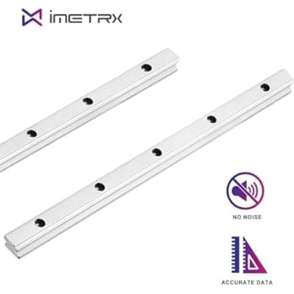 Package included: 2 pcs HGR20 linear guide and 4 pcs HGH20CA bearing block Made of high quality carbon steel with surface silver plating, the HGR20 linear guides offer robust performance resistant to rust and durable for constant use Industry standard HGH block with precise linear bearing on the inside. Standardized manufacturing for perfect guide rail positioning. Aluminium alloy support rail with pre-drilled holes for easy installation Low friction loss and high transmission efficiency makes the HGR20 linear guide perfectly suitable for DIY CNC milling, lathes and other machine tool applications iMetrx Focuses on high-quality 3D printing products and accessories for professionals and hobbyists › See more product details; Product description iMetrx HGR20 Linear Guide Linear Rail 2 Pieces 800 mm with 4 Pieces High Precision HGH20CA Linear Bearing Block for 3D Printers, CNC Machines (Linear Rail HGR20 800 mm); Product description iMetrx HGR20 Linear Guide Linear Rail 2 Pieces 800 mm with 4 Pieces High Precision HGH20CA Linear Bearing Block for 3D Printers, CNC Machines (Linear Rail HGR20 800 mm); iMetrx HGR20 Linear Guide Linear Rail 2 Pieces 800 mm with 4 Pieces High Precision HGH20CA Linear Bearing Block for 3D Printers, CNC Machines (Linear Rail HGR20 800 mm)