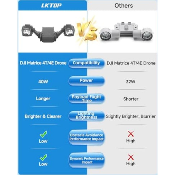 LKTOP Matrice 4 Enterprise Spotlight Drone Strobe Light for DJI Matrice 4E/4T Accessories, 3000 Lumens Anti-Collision Lights 40W LED Searchlight Night Flight Lighting Lamp for Search/Rescue