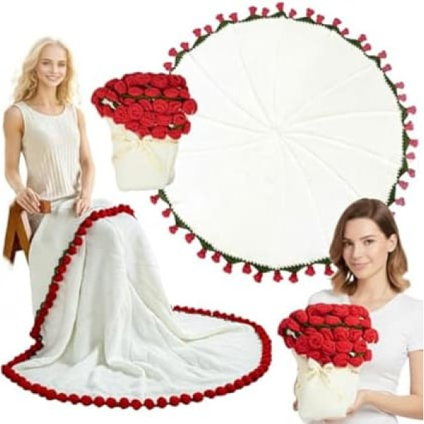 Product description Discover this beautiful handmade rose bouquet blanket - a true work of art made of 68 lovingly crocheted red roses. At an impressive size of 110 cm, this unique blanket is presented in a cream base tone, adorned with an elegant ribbon. The detailed crochet flowers create a three-dimensional effect and give the blanket a special texture. Perfect as a special gift for Mother's Day, Valentine's Day or birthday. The combination of decorative beauty and practical functionality makes this blanket an exceptional gem for any home. Each rose has been carefully crafted by hand, making each blanket unique and unique. The harmonious arrangement of roses creates an impressive visual experience that can be used as both a wall hanging and a decorative blanket.; Product description Discover this beautiful handmade rose bouquet blanket - a true work of art made of 68 lovingly crocheted red roses. At an impressive size of 110 cm, this unique blanket is presented in a cream base tone, adorned with an elegant ribbon. The detailed crochet flowers create a three-dimensional effect and give the blanket a special texture. Perfect as a special gift for Mother's Day, Valentine's Day or birthday. The combination of decorative beauty and practical functionality makes this blanket an exceptional gem for any home. Each rose has been carefully crafted by hand, making each blanket unique and unique. The harmonious arrangement of roses creates an impressive visual experience that can be used as both a wall hanging and a decorative blanket.; Discover this beautiful handmade rose bouquet blanket - a true work of art made of 68 lovingly crocheted red roses. At an impressive size of 110 cm, this unique blanket is presented in a cream base tone, adorned with an elegant ribbon. The detailed crochet flowers create a three-dimensional effect and give the blanket a special texture. Perfect as a special gift for Mother's Day, Valentine's Day or birthday. The combination of decorative beauty and practical functionality makes this blanket an exceptional gem for any home. Each rose has been carefully crafted by hand, making each blanket unique and unique. The harmonious arrangement of roses creates an impressive visual experience that can be used as both a wall hanging and a decorative blanket.
