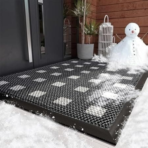 【Commercial Durability】48 x 31 inch cover with 0.6 inch thick military grade rubber base withstands daily pressure. Certified for shopping malls, school entrances and warehouse use. ADVANCED DRAINAGE SYSTEM Patented 360° gutter design channels 1.5 gallons of water/minute, 50% more efficient than standard mats. Ideal for rainy regions and snowy climates. EXTENDED PROTECTION AREA Covers 2x more floor space than traditional mats, specially designed for double doors and wheelchair access points. Reduces cleaning frequency by 60%. Architectural Integration Modernist geometric pattern scales beautifully for large spaces. Beveled edges create a seamless transition between indoor and outdoor areas, ADA compliant slope design. › See more product details; Product description Introducing our elegant and stylish doormat that is perfect for any indoor or outdoor use. Made of durable black geometric pattern. This doormat is not only non-slip, but also designed to withstand heavy foot traffic and weather conditions. Our outdoor doormats are designed to resist dirt, mud, snow and other outdoor elements, making it a reliable solution for your front door mat. Its high absorbency not only keeps your floors clean, but also provides a safer environment for your family and guests. Our entrance door mat is perfect for indoor use as it effectively traps dirt and dust while reducing the risk of slipping. Perfect for use in high traffic areas such as hallways, lobbies and entrances. Cleaning our outdoor doormat is easy thanks to its practical and hassle-free design. You can simply shake off the dirt and debris or rinse with a hose to keep it looking as good as new. Plus, the entrance mat is designed with an elegant and modern pattern that complements any decor and gives your home a fresh look. In addition, it is an affordable solution that meets everyone's needs. Whether you are looking for an outdoor entrance doormat or an outdoor doormat our product is versatile and offers durability and style. Invest in our reliable, non-slip and easy to clean floor mats to keep your home clean and safe. Our doormat is the perfect way to welcome your guests while protecting the floors of your home. Order today and experience the difference!; Product description Introducing our elegant and stylish doormat that is perfect for any indoor or outdoor use. Made of durable black geometric pattern. This doormat is not only non-slip, but also designed to withstand heavy foot traffic and weather conditions. Our outdoor doormats are designed to resist dirt, mud, snow and other outdoor elements, making it a reliable solution for your front door mat. Its high absorbency not only keeps your floors clean, but also provides a safer environment for your family and guests. Our entrance door mat is perfect for indoor use as it effectively traps dirt and dust while reducing the risk of slipping. Perfect for use in high traffic areas such as hallways, lobbies and entrances. Cleaning our outdoor doormat is easy thanks to its practical and hassle-free design. You can simply shake off the dirt and debris or rinse with a hose to keep it looking as good as new. Plus, the entrance mat is designed with an elegant and modern pattern that complements any decor and gives your home a fresh look. In addition, it is an affordable solution that meets everyone's needs. Whether you are looking for an outdoor entrance doormat or an outdoor doormat our product is versatile and offers durability and style. Invest in our reliable, non-slip and easy to clean floor mats to keep your home clean and safe. Our doormat is the perfect way to welcome your guests while protecting the floors of your home. Order today and experience the difference!; Introducing our elegant and stylish doormat that is perfect for any indoor or outdoor use. Made of durable black geometric pattern. This doormat is not only non-slip, but also designed to withstand heavy foot traffic and weather conditions. Our outdoor doormats are designed to resist dirt, mud, snow and other outdoor elements, making it a reliable solution for your front door mat. Its high absorbency not only keeps your floors clean, but also provides a safer environment for your family and guests. Our entrance door mat is perfect for indoor use as it effectively traps dirt and dust while reducing the risk of slipping. Perfect for use in high traffic areas such as hallways, lobbies and entrances. Cleaning our outdoor doormat is easy thanks to its practical and hassle-free design. You can simply shake off the dirt and debris or rinse with a hose to keep it looking as good as new. Plus, the entrance mat is designed with an elegant and modern pattern that complements any decor and gives your home a fresh look. In addition, it is an affordable solution that meets everyone's needs. Whether you are looking for an outdoor entrance doormat or an outdoor doormat our product is versatile and offers durability and style. Invest in our reliable, non-slip and easy to clean floor mats to keep your home clean and safe. Our doormat is the perfect way to welcome your guests while protecting the floors of your home. Order today and experience the difference!