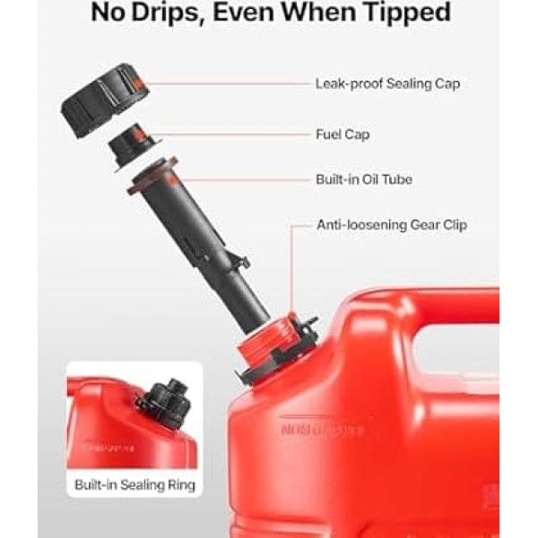 VEVOR Kraftstoffkanister, 2er-Pack 19 L, Benzinkanister mit Ausguss & klarer Skala, max. Durchflussrate 15 L/min, Flüssigkeitsbehälter für die meisten Autos, Motorräder, ATVs & UTVs, rot, 2er-Pack
