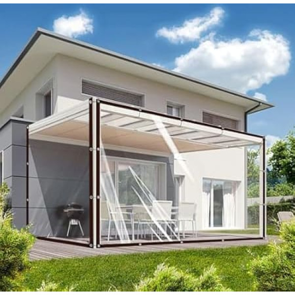 Tarpaulin Transparent for Outdoor Use with Eyelets, Waterproof, Balcony Rain Cover, Tarpaulin Garden Furniture, for Outdoor Use, Rainproof, with Tie Rope, 3 x 6 m