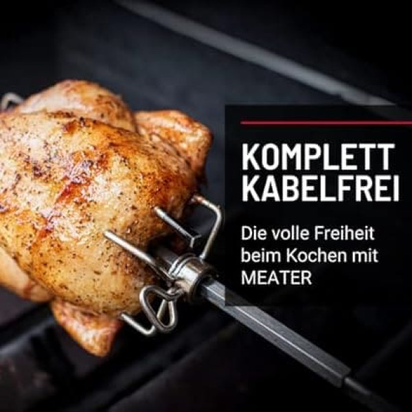 Perfect cooking results: Whether steak, roasts, poultry or fish, with the smart meat thermometer Meater+ every meat dish will be a feast for the palate. Easy to prepare without tangled wires: Start the Meater app on your smartphone or tablet, select the type of meat, select the desired cooking level and start straight away. As soon as the desired temperature is reached, the (hobby) chef will receive a notification. Smart technology: Precise temperature measurement via two sensors and data transmission to smartphone or tablet. The intuitive app (iOS/Android) guides you through the entire cooking process and gives tips and tricks for preparation (in German, English language not guaranteed). Double measurement: Two temperature sensors monitor the core temperature of the food (up to 100 °C) and the ambient temperature (up to 275 °C) simultaneously. Better time management: The advanced estimate algorithm determines the estimated duration of the cooking process and the rest time. › See more product details