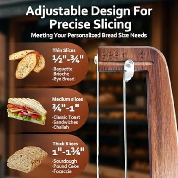 Bread Slicer for Homemade Bread - Adjustable Wood Sourdough Knife with Thickness Adjustment, Crispy Sourdough Bread and Baguette Cutting Tool Ambidextrous