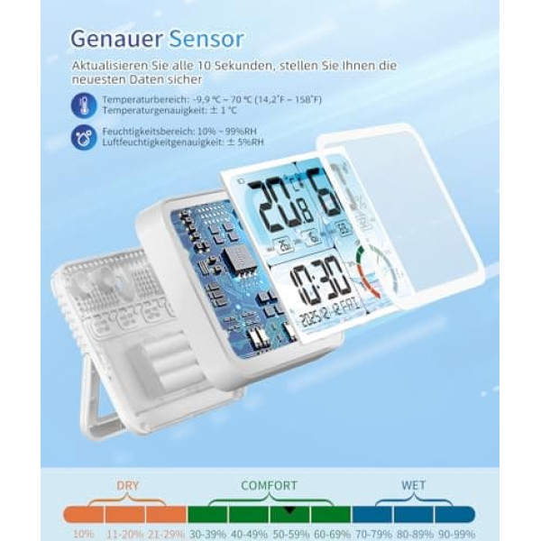 VOCOO 5.8 Inch Digital Room Thermometer and Hygrometer - LCD Display with Backlight and Comfort Display, Max/Min Memory, Clock and Calendar, Two Power Supply Options (USB/Battery)