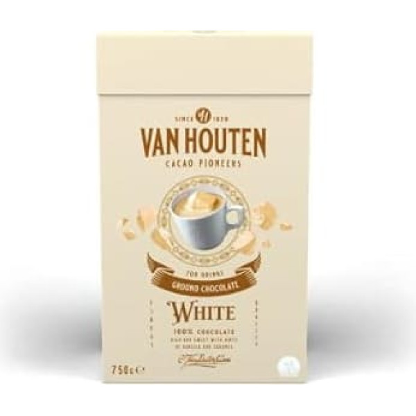 Van Houten Ground White Chocolate for Hot and Cold Drinks - Rich and Sweet with Hints of Vanilla and Caramel - GMO Free