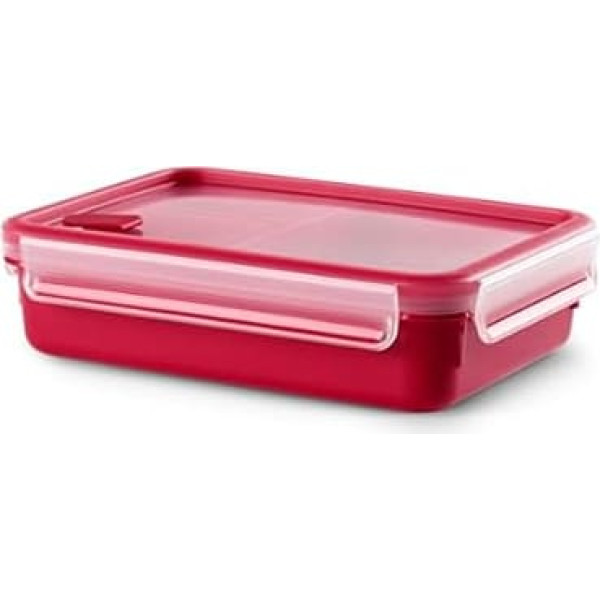 Emsa Microwave Box Clip & Micro 517775 with 3 Inserts Microwave Valve 1.2 L Lunch Box with Integrated Measurement Division, Made in Germany Red / Transparent