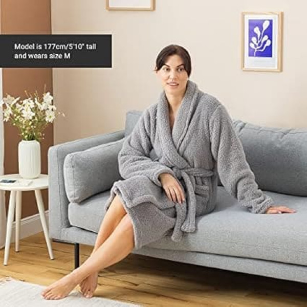 Cuddly Fleece Bathrobe for Women - Sherpa Dressing Gown with Pockets Shawl Collar Belt - Women's Bathrobes Machine Washable