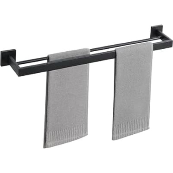 High-quality SUS 304 stainless steel – made of rust-proof SUS 304 stainless steel – optimal resistance to moisture, limescale and corrosion. Guarantees long-lasting durability even in wet rooms such as bath or sauna. No fading, no stains! Easy screw installation -- Quickly attaches with screws and dowels (for drywall/concrete). The clear installation instructions make installation a breeze. Robust and durable - no wobbling even under full load! Elegant surface -- Matte black surface with silky smooth appearance: resists fingerprints, scratch resistant and comfortable to touch. Fits perfectly with modern bathroom design! Double rod design -- Two separate rods allow separation of wet and dry towels. Maximum ventilation thanks to 48 mm distance - prevents mould odour. Capacity: up to 6 standard towels Size: 700 mm x 120 mm x 55 mm. The towel bar is 634mm long and can accommodate large bath towels. › See more product details