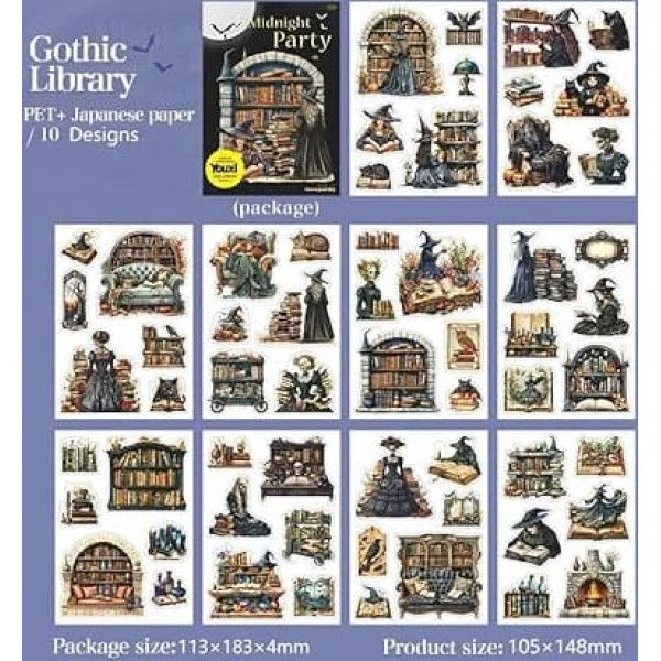 Kesari Scrapbook Stickers Accessories for Bullet Journal, Gothic Witch Series Halloween Theme for Decoration, Journaling, Photo Album, Notepads, Computer, Scrapbooking (Gothic Library)