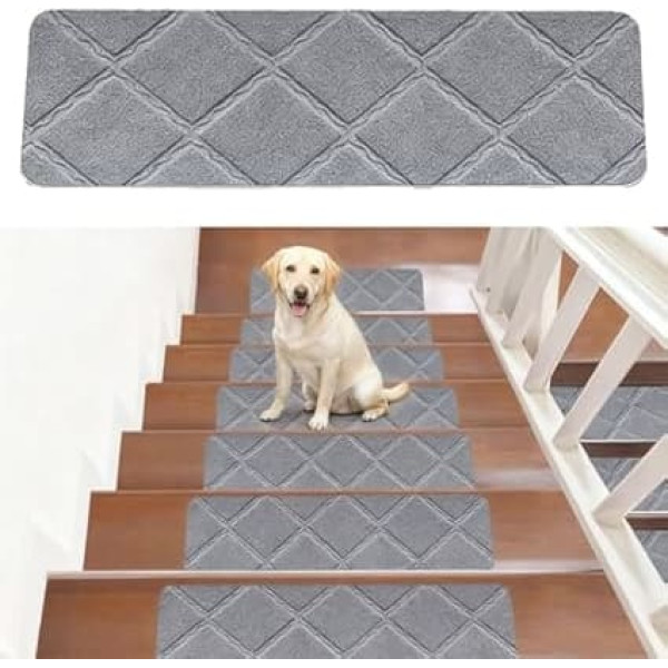 Safe and comfortable: the non-slip stairs are made of high-quality polyester material and offer a soft and durable surface that ensures comfort underfoot. The appropriate thickness insulates from cold stairs while reducing noise Particularly soft and quiet: thanks to the fine seams and high-quality fibres, our stair mats offer particularly soft comfort and dampen noises. The stair rug ensures safe, non-slip use, ideal for all types of stairs Non-slip stairs: with a TPR self-adhesive backing, the stair steps provide excellent grip without leaving residue. Suitable for stairs made of wood, tiles, marble and glass, ensure the step mat safety for children and pets and prevent slips and falls Easy to use and cut: the dimension of each stair rug is 55 x 19 cm, 15 pieces per pack, the quantity meets the needs of most families. Stair runner rugs can be cut freely and DIY into the size and shape you want Protect and beautify your stairs: non-slip mat stairs prevent scratches and damage to the stair surface. In addition, stair treads can add a decorative touch to your house and beautify your stairs, and add a warm and comfortable atmosphere to your house › See more product details; Product description Features - Made of mixed fibre material with a soft but durable surface for optimal sound comfort. - The non-slip stair protection can be attached quickly and easily thanks to the adhesive strip on the back of the stair mat. - Caring for this stair rug is a breeze. Simply vacuum or throw in the washing machine to clean thoroughly. - The stair treads mats, stair rugs or even step pads offer the ideal stair protection. - This non-slip tape for steps reliably protects children, elderly and pets from dangerous slips. Specifications Material: mixed fibre. Size: 55 x 19 cm. Package list: 15 x stair tread mats.; Product description Features - Made of mixed fibre material with a soft but durable surface for optimal sound comfort. - The non-slip stair protection can be attached quickly and easily thanks to the adhesive strip on the back of the stair mat. - Caring for this stair rug is a breeze. Simply vacuum or throw in the washing machine to clean thoroughly. - The stair treads mats, stair rugs or even step pads offer the ideal stair protection. - This non-slip tape for steps reliably protects children, elderly and pets from dangerous slips. Specifications Material: mixed fibre. Size: 55 x 19 cm. Package list: 15 x stair tread mats.; Features - Made of mixed fibre material with a soft but durable surface for optimal sound comfort. - The non-slip stair protection can be attached quickly and easily thanks to the adhesive strip on the back of the stair mat. - Caring for this stair rug is a breeze. Simply vacuum or throw in the washing machine to clean thoroughly. - The stair treads mats, stair rugs or even step pads offer the ideal stair protection. - This non-slip tape for steps reliably protects children, elderly and pets from dangerous slips. Specifications Material: mixed fibre. Size: 55 x 19 cm. Package list: 15 x stair tread mats.