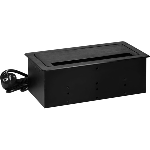 Iebūvējamā mēbeļu kontaktligzda ar plakanu flīzētu malu, putekļu slotiņu un 1,5 m kabeli, 2x2P+Z (franču), 2xUSB (A+C tips; 3,6A), 2xNET, melns