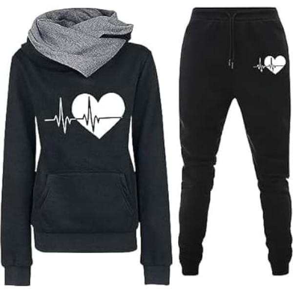 Women Sweatshirt Sets Cowl Neck Color Block 2 Piece Outfit Tracksuits Long Sleeve Pants Casual Sweatshirt