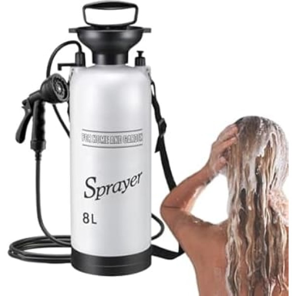 CONVENIENT APPLICATION With clear design ready to use - this portable shower provides seamless outdoor experience without tools or complicated steps Portable system: uninterrupted water flow through hand mechanism - requires no electricity and effectively minimizes water loss thanks to thoughtful design VERSATILE USE Essential for car washing, garden irrigation and outdoor showers: this portable tool provides flexibility and practical utility for numerous cleaning applications Practical range: the fibre-free hose with 3 metres length offers maximum freedom of movement for comfortable cleaning of body and surfaces thanks to robust materials. EASY TRANSPORT Lightweight design and compact design of the portable shower (5L/8L) allow effortless storage in bags or cars for reliable hygiene solutions when camping or travelling. › See more product details; Product description Transform your outdoor adventures with a portable shower that combines handling comfort and lightweight portability. Designed for bathing, washing and cleaning, this shower system is ideal for camping, travelling and beach stays. The efficient shower head and practical accessories satisfy various needs such as pet baths, plant watering or car washing. Perfect for RV baths, boats or construction sites, it offers versatility for indoor and outdoor use without compromising on ease of use. Specifications: : Product size: approx. 18x18x42.5cm/7.09x7.09x16.73 inches. Weight: 1100 g. Material: PP, PE. Capacity: 5 litres. Large: Product size: approx. 18x18x56cm/7.09x7.09x22.05 inches. Weight: 1200 g Material: PP, PE. Capacity: 8 litres. Packing list: 1 x portable shower. Note: Due to different lighting and screen settings, the colour of the item may differ slightly from the picture. Due to different manual measurement, please allow a size of 1-2 cm in size.; Product description Transform your outdoor adventures with a portable shower that combines handling comfort and lightweight portability. Designed for bathing, washing and cleaning, this shower system is ideal for camping, travelling and beach stays. The efficient shower head and practical accessories satisfy various needs such as pet baths, plant watering or car washing. Perfect for RV baths, boats or construction sites, it offers versatility for indoor and outdoor use without compromising on ease of use. Specifications: : Product size: approx. 18x18x42.5cm/7.09x7.09x16.73 inches. Weight: 1100 g. Material: PP, PE. Capacity: 5 litres. Large: Product size: approx. 18x18x56cm/7.09x7.09x22.05 inches. Weight: 1200 g Material: PP, PE. Capacity: 8 litres. Packing list: 1 x portable shower. Note: Due to different lighting and screen settings, the colour of the item may differ slightly from the picture. Due to different manual measurement, please allow a size of 1-2 cm in size.; Transform your outdoor adventures with a portable shower that combines handling comfort and lightweight portability. Designed for bathing, washing and cleaning, this shower system is ideal for camping, travelling and beach stays. The efficient shower head and practical accessories satisfy various needs such as pet baths, plant watering or car washing. Perfect for RV baths, boats or construction sites, it offers versatility for indoor and outdoor use without compromising on ease of use. Specifications: : Product size: approx. 18x18x42.5cm/7.09x7.09x16.73 inches. Weight: 1100 g. Material: PP, PE. Capacity: 5 litres. Large: Product size: approx. 18x18x56cm/7.09x7.09x22.05 inches. Weight: 1200 g Material: PP, PE. Capacity: 8 litres. Packing list: 1 x portable shower. Note: Due to different lighting and screen settings, the colour of the item may differ slightly from the picture. Due to different manual measurement, please allow a size of 1-2 cm in size.