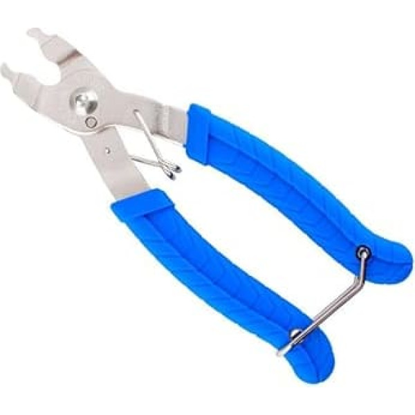 Universal for all chains (6-12 speed): these special pliers reliably open (removed) and closes (assembled) all standard chain locks (Magic Links, Quick Links) from 6, 7, 8, 9, 10, 11 to 12 speed bicycle chains. A tool for all maintenance and repair work on the chain. 【SMART BI-DIRECTIONAL JAW SHAPE】Unique shaped counter-rotating jaws grip the chain lock precisely and effortlessly. The special curve shape ensures optimum hold when opening and closing the connector - no slipping, no damage to the lock plates. Integrated safety clip (protective function): the important safety clip limits the opening and closing distance of the pliers. This prevents the spring from overstretching and at the same time protects the sensitive chain lock from excessive pressure or bending caused by squeezing too much. Maximum durability for pliers and your chain locks Robust and ergonomic: made of high-strength carbon steel for maximum load capacity and long service life. The grippy, rubberised handles (overmold) provide excellent comfort, non-slip grip and reduce hand fatigue even with frequent use. Edges deburred for safe handling. Practical and reliable: the ideal tool for cleaning, maintenance (e.g. chain changing), roadside assistance on the go or replacing old/new chains. Compact design and with high-quality surface finish (polished, sandblasted) against corrosion. An indispensable helper for any bicycle workshop or saddle bag. › See more product details