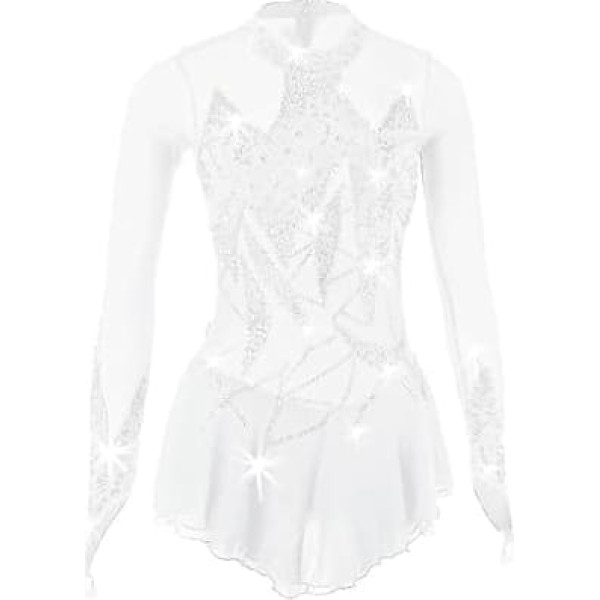 Eislaufen Kleid for Mädchen Und Frauen, Weiße Handgemachte Eiskunstlauf Berufswettbewerb Kostüm Auf Bestellung Langärmelkleid